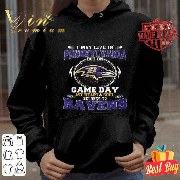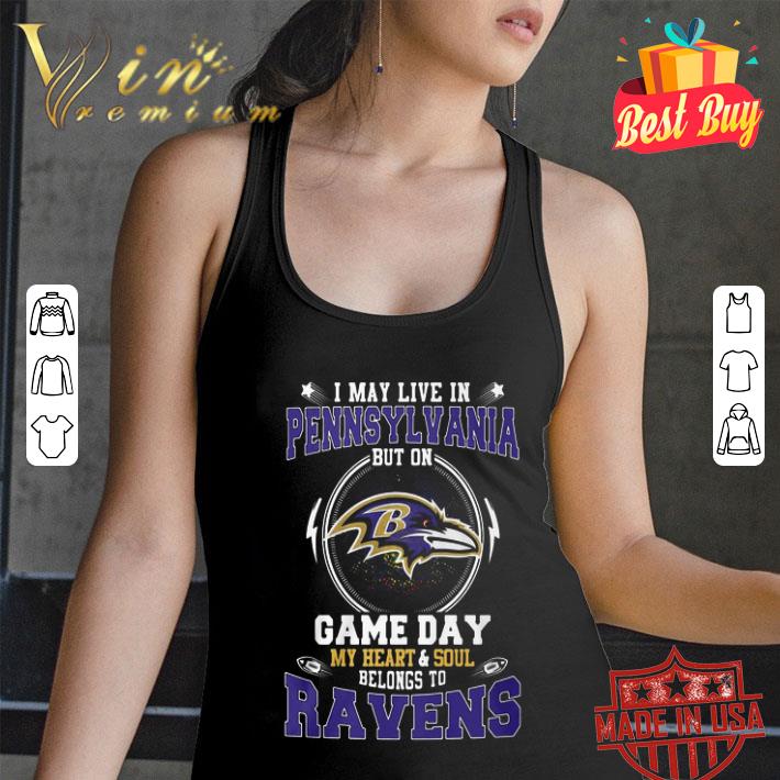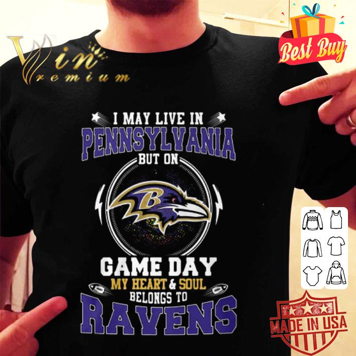 I May Live In Pennsylvania But On Game Day My Heart Baltimore Ravens shirt, Hoodie, Sweater, Longsleeve T-Shirt For Men and Women